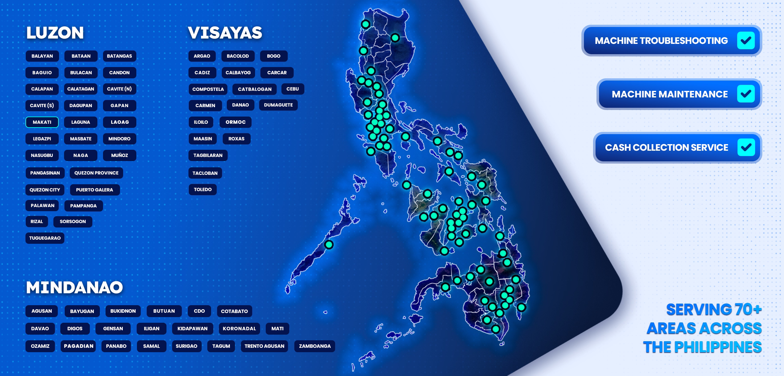 We also provide cash management operations and other services to ensure comprehensive, end-to-end self-service technology services, encompassing your customers' transactions to cash collection.